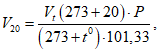 Приведение объема воздуха к температуре 20 °C и давлению 760 мм рт. ст. проводят по следующей формуле:
