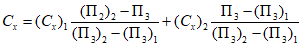 Если расчетные значения безразмерных критериев lg П2 и П3 отличаются от значений, указанных в таблице пересчета, то промежуточные значения критериев определяют по интерполяционным формулам. При этом возможны три варианта.