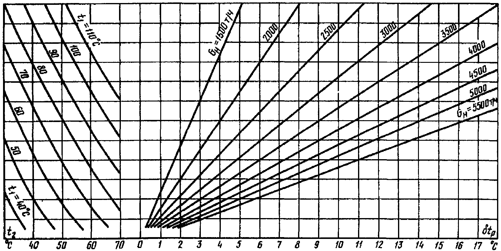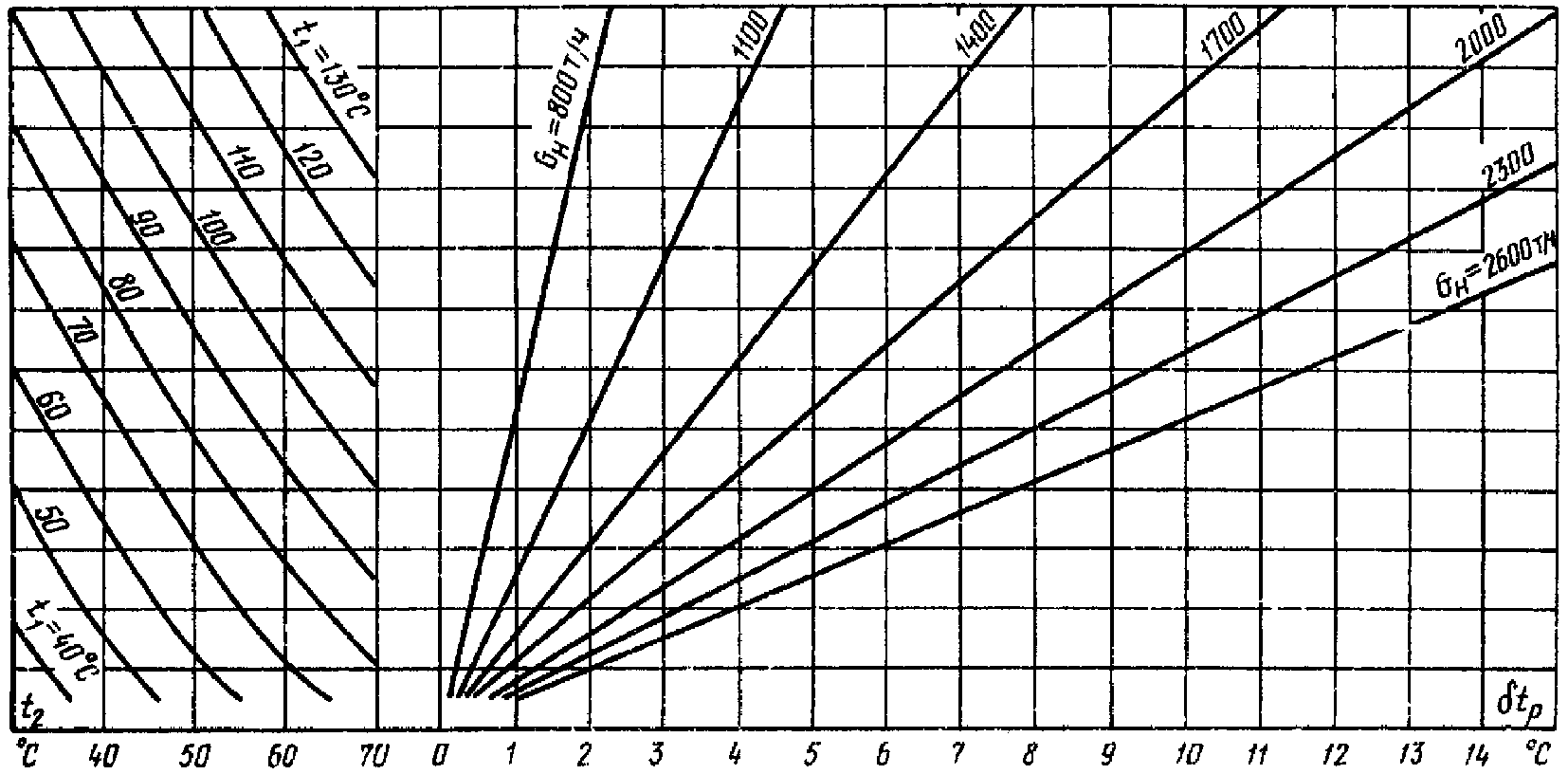 рис. П2.3, б) находим расчетное значение температурного напора, которое для условий измерений составит