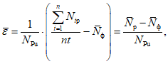 где Niр - число зарегистрированных импульсов от образцового источника при i-м наблюдении за время t, с;