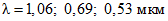0,69 мкм | 4·10-4 | 4·10-4 | 4·10-4 | 4·10-4 | 4·10-4 | 4·10-4 |