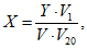 V20 - объем воздуха в л, отобранный для анализа и приведенный к нормальным условиям по формуле (см.