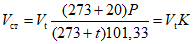 где Vt - объем воздуха, измеренный при t °C и давлении 101,33 кПа.