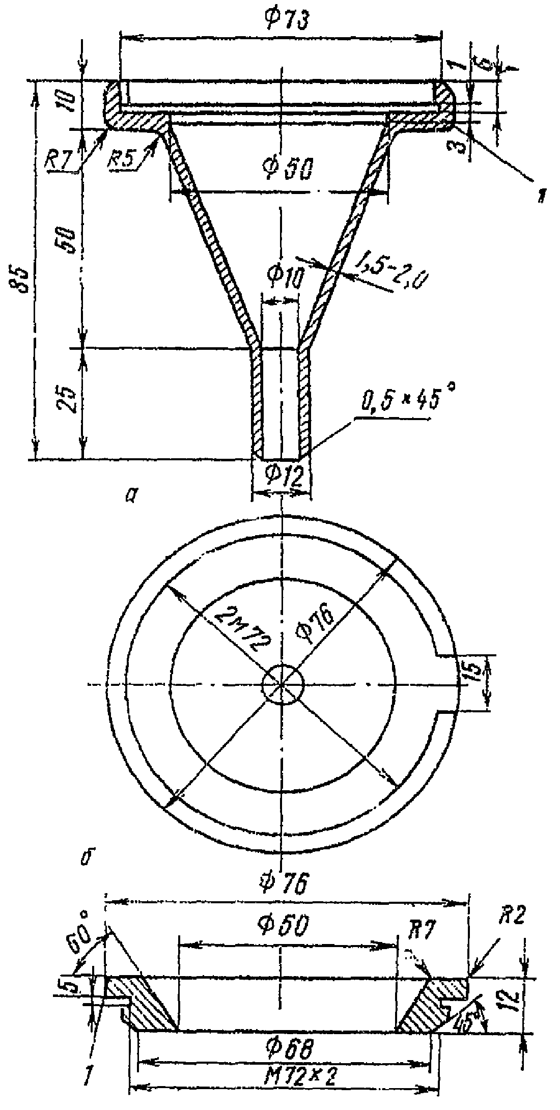 а - корпус; б - гайка; 1 - накатка