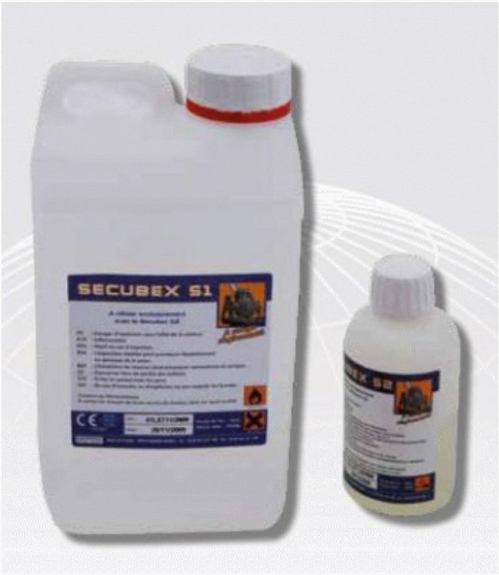 "SECUBEX S1" (основа) и "SECUBEX S2" - это легковоспламеняющиеся и едкие вещества, но не взрывоопасные при соблюдении правил хранения и транспортировки химических веществ. Взрывоопасными компоненты становятся при их смешивании и при нагревании.