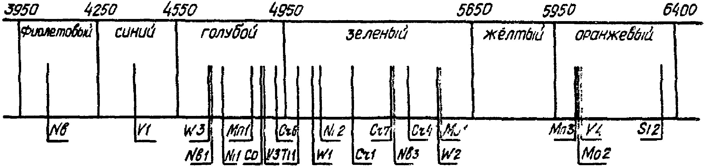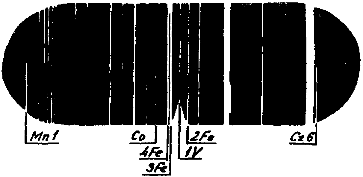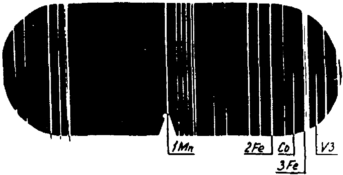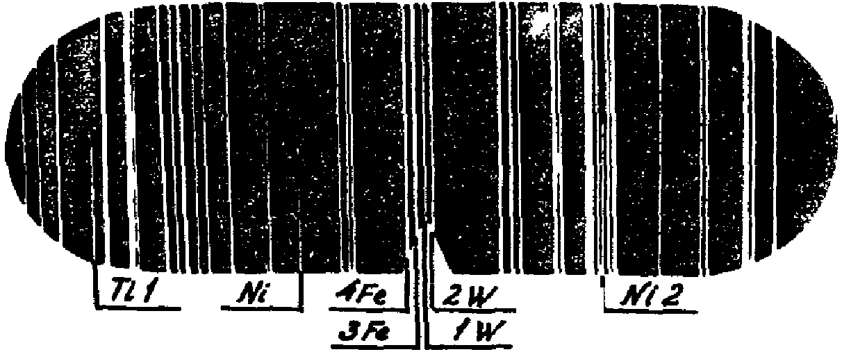 Наличие в спектре характерных линий искомых элементов указывает на присутствие данных элементов в анализируемом металле.