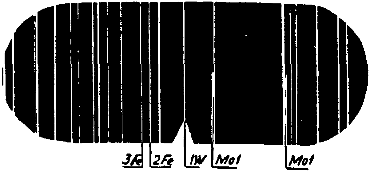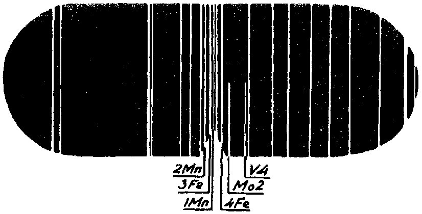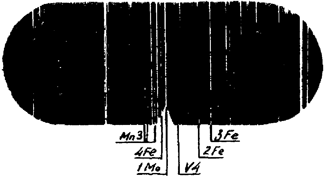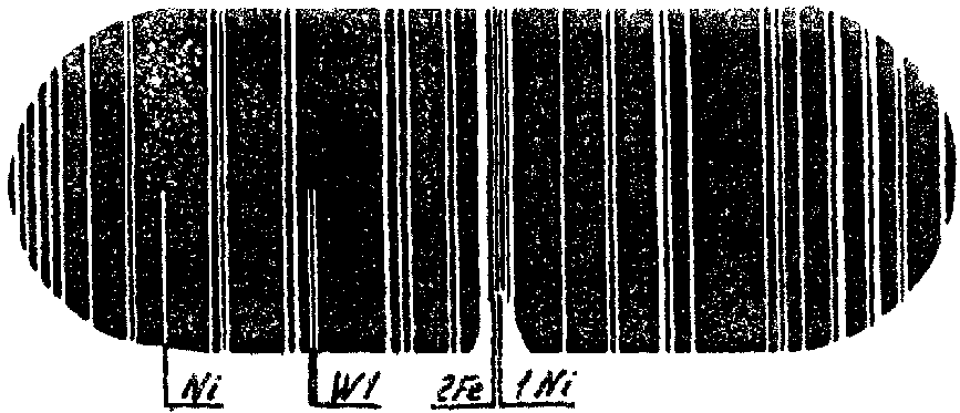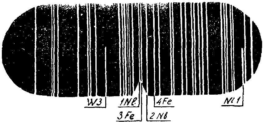 Сравнение относительной интенсивности спектральных линий искомых элементов с линиями основы дает возможность приближенной оценки содержания в металле элементов.