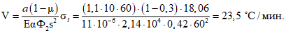 Допустимая скорость прогрева, соответствующая этим температурным напряжениям, равна