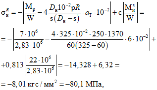 18. Из-за близких значений размахов напряжений от давления и внешних нагрузок для внутренней и наружной поверхностей определяющими в рассматриваемом примере являются