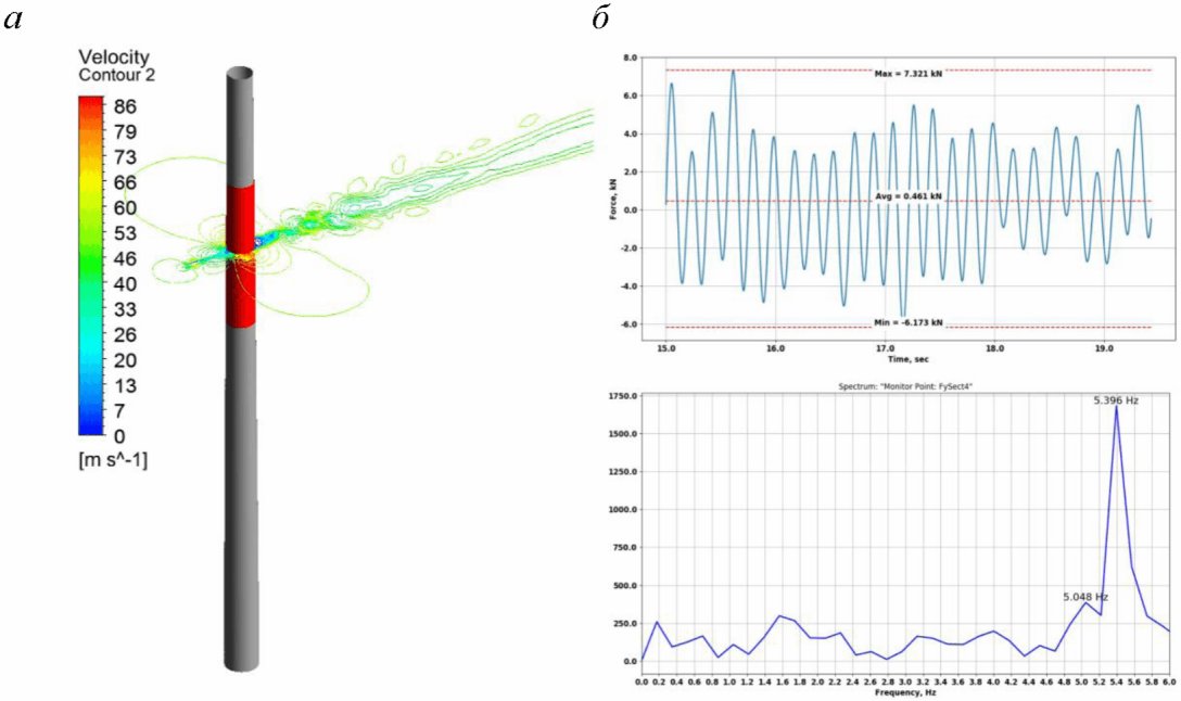 Средние и пульсационные ветровые нагрузки на фундамент, а также главные частоты срыва вихрей определялись нестационарным расчетом с использованием модели турбулентности DES SST
