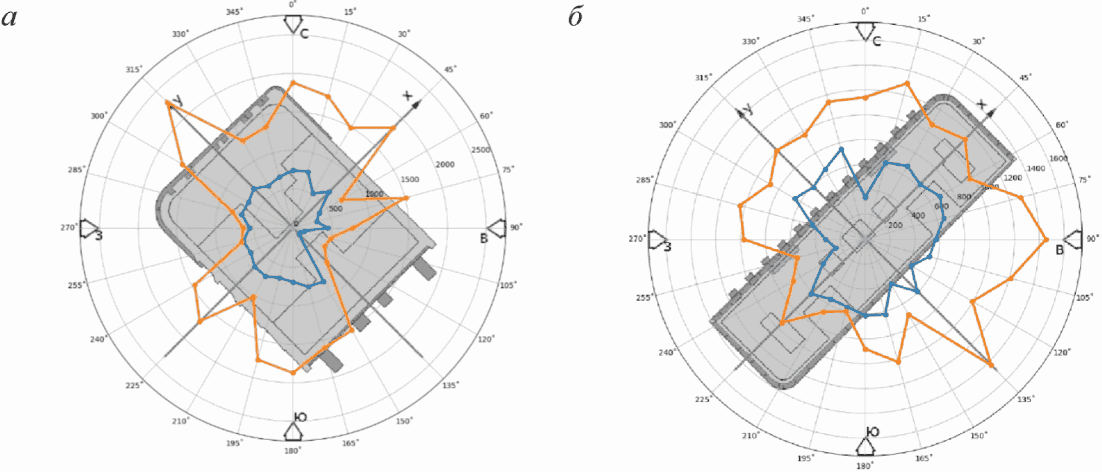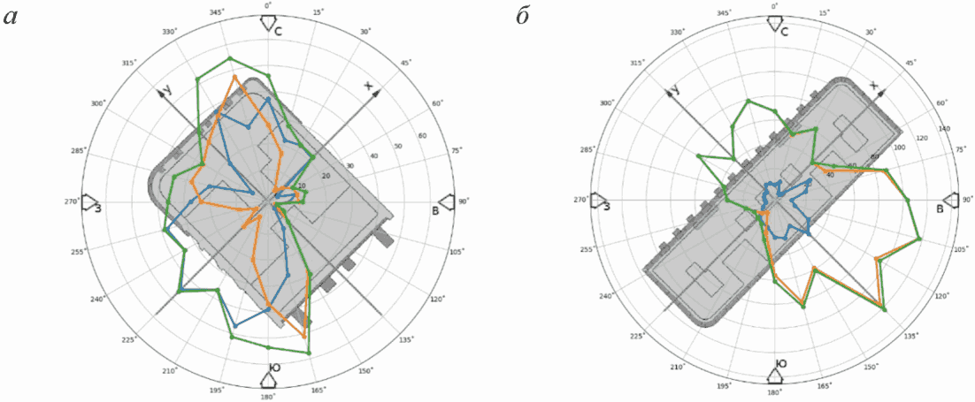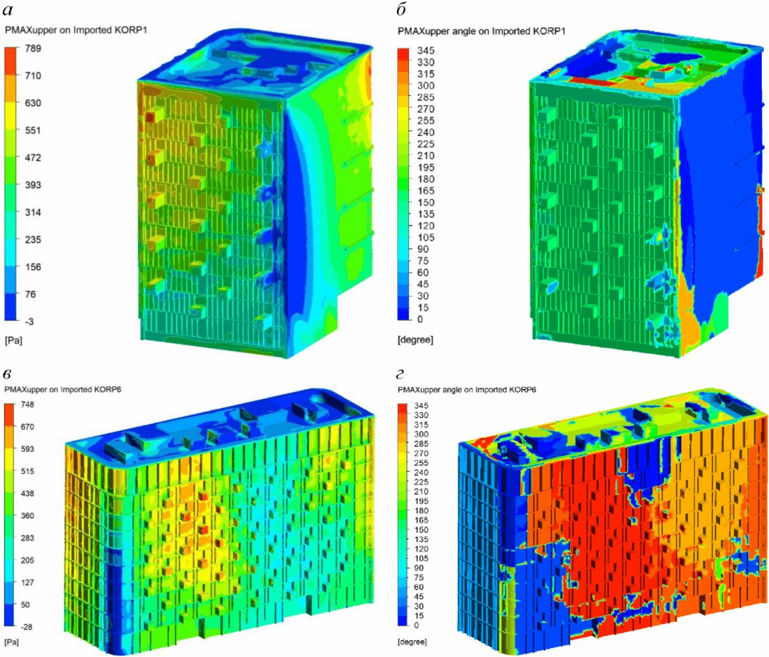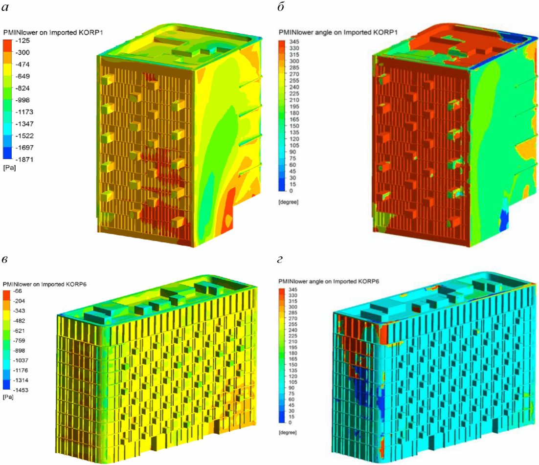 3.1.7 огибающие пикового ветрового давления: Максимальные (минимальные) значения пикового ветрового давления среди всех направлений ветра в каждой точке ограждающих (фасадных) конструкций.