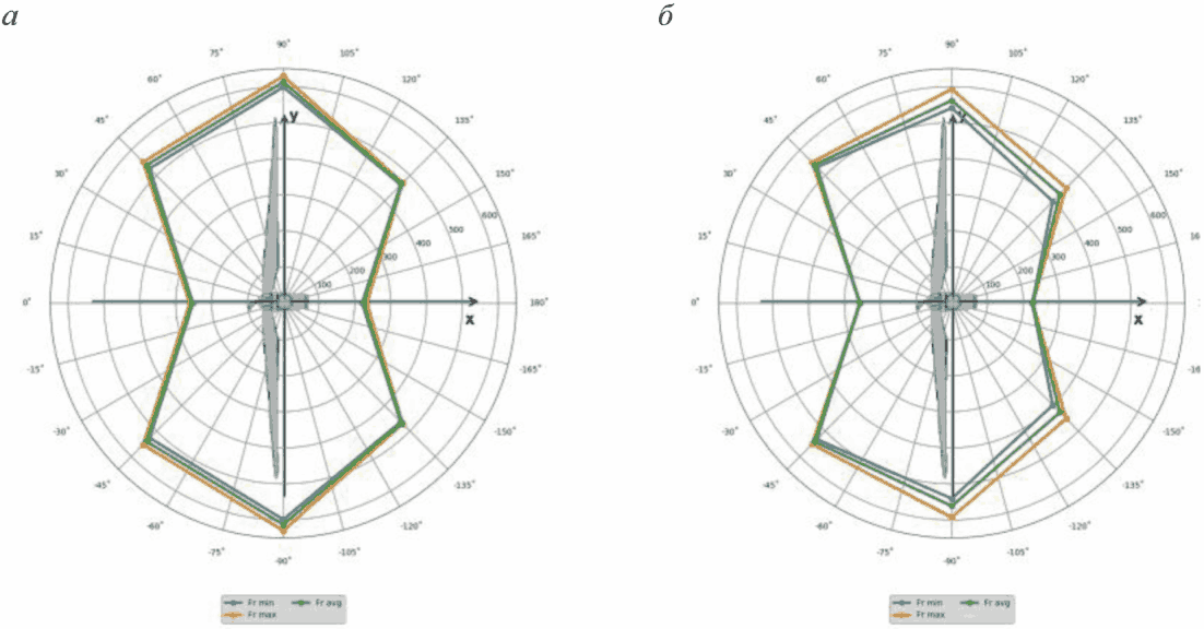 Для ВЭУ со вторым положением лопастей (одна из лопастей направлена вверх) максимальное расчетное значение средней составляющей равнодействующей аэродинамической силы FR на несущие конструкции реализуется при угле атаки ветра 90° и составляет 561,5 кН.
