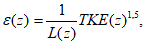 [30]. Зависимости от вертикальной координаты для скорости, кинетической энергии турбулентности и скорости диссипации энергии: