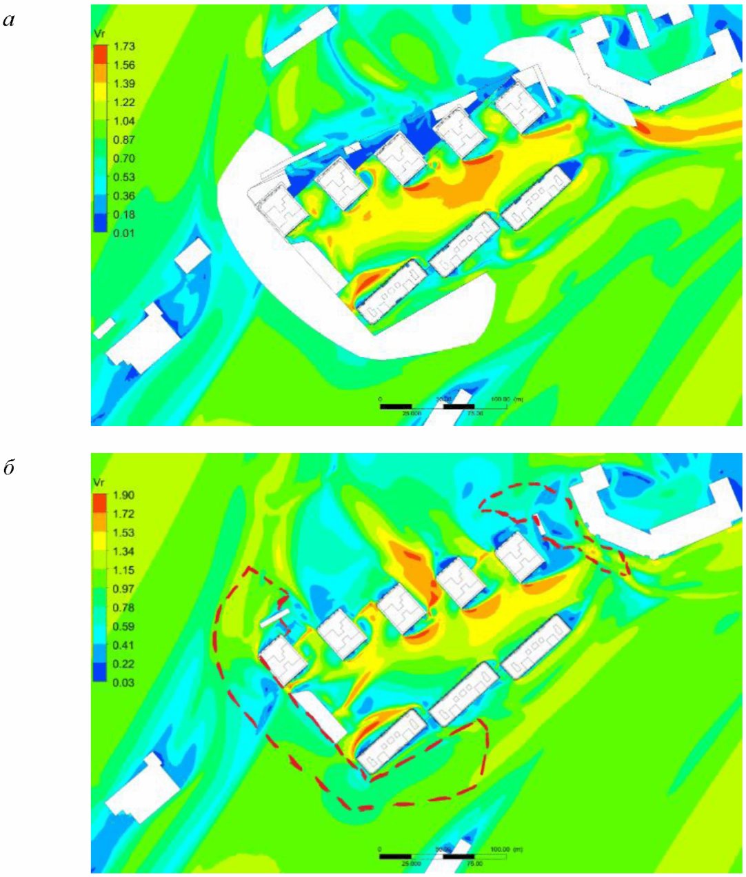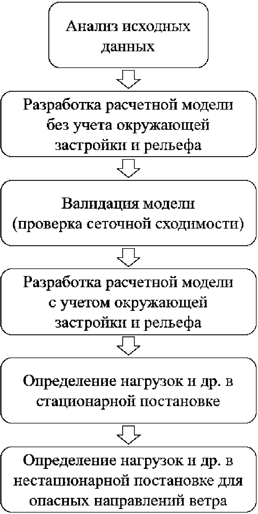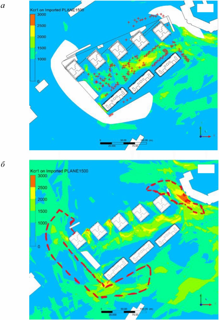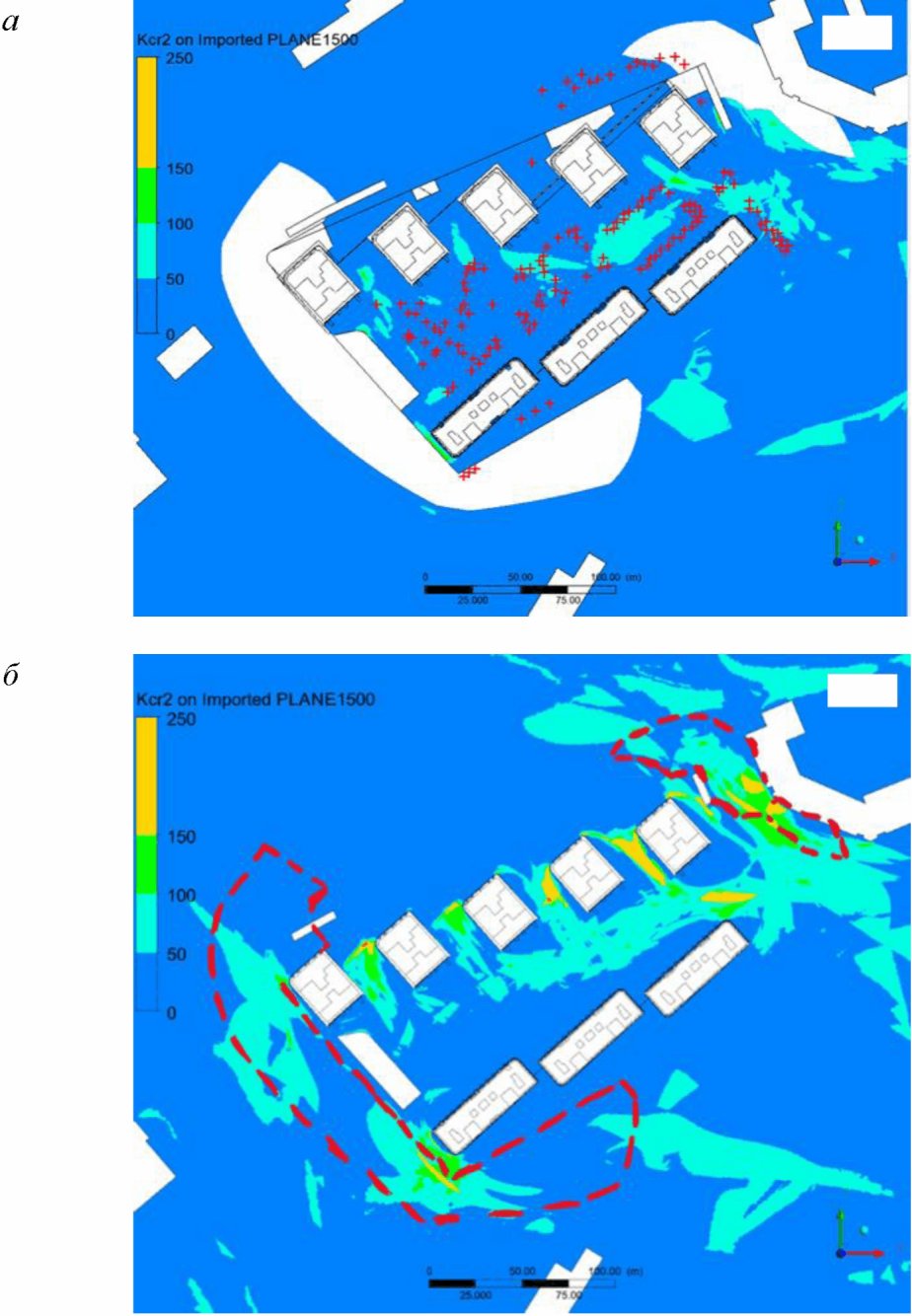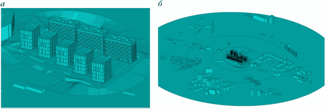 2) математического (численного) моделирования ветровой аэродинамики на основе численных схем решения трехмерных уравнений движения жидкости и газа с адекватными моделями турбулентности, реализованных в современных верифицированных лицензионных программных комплексах вычислительной гидрогазодинамики.