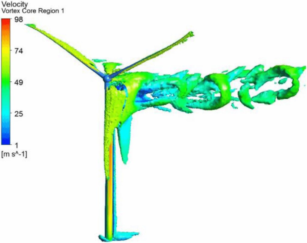Результаты показали, что главные частоты срыва вихрей существенно меняются по высоте башни. Этот факт обусловлен изменениями по высоте горизонтальной составляющей скорости, диаметра башни, а также наличием лопасти, чье сечение также сильно изменяется по высоте. На спектральной плотности мощности суммарной нагрузки на фундамент можно наблюдать множество частот срыва вихрей.