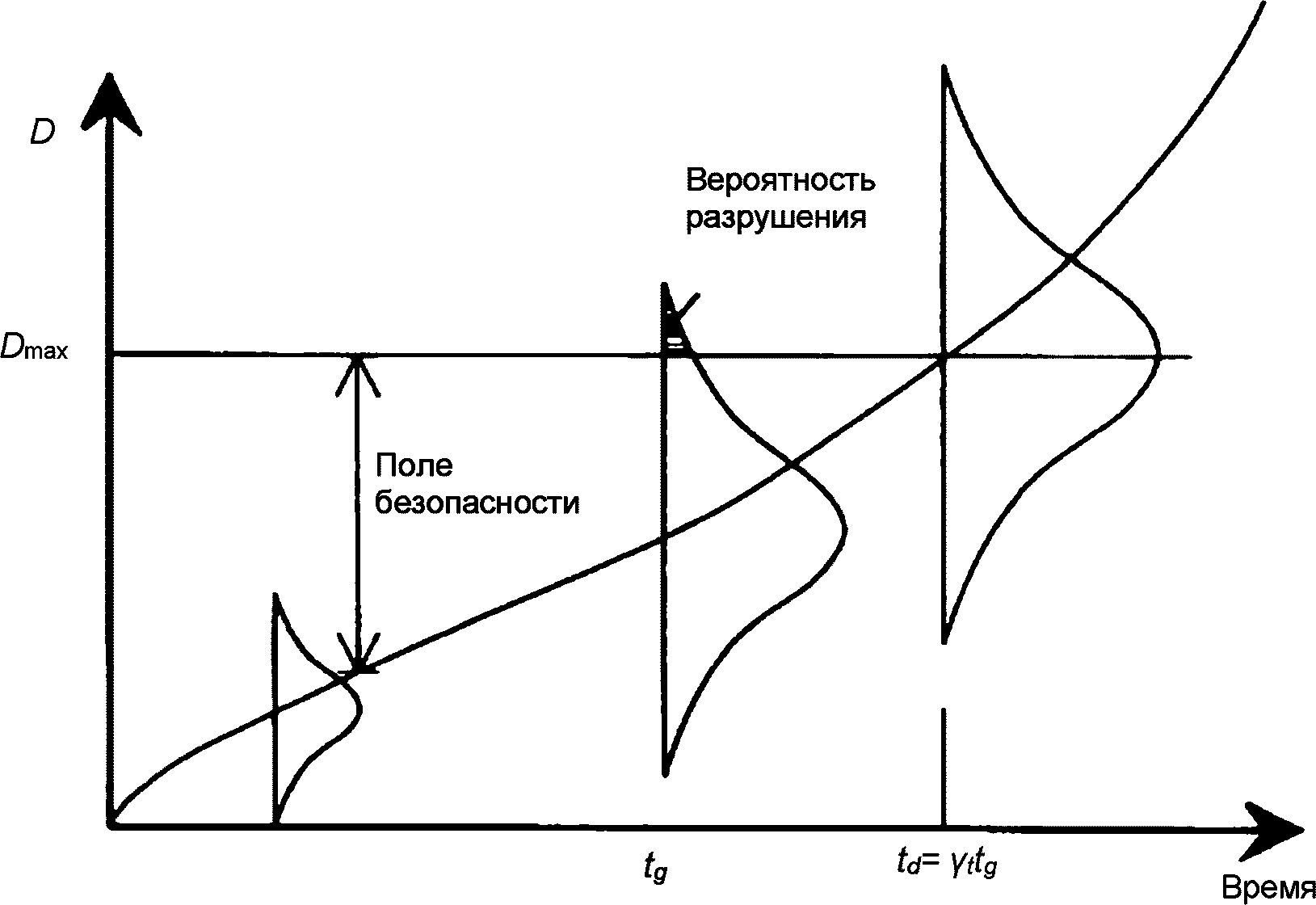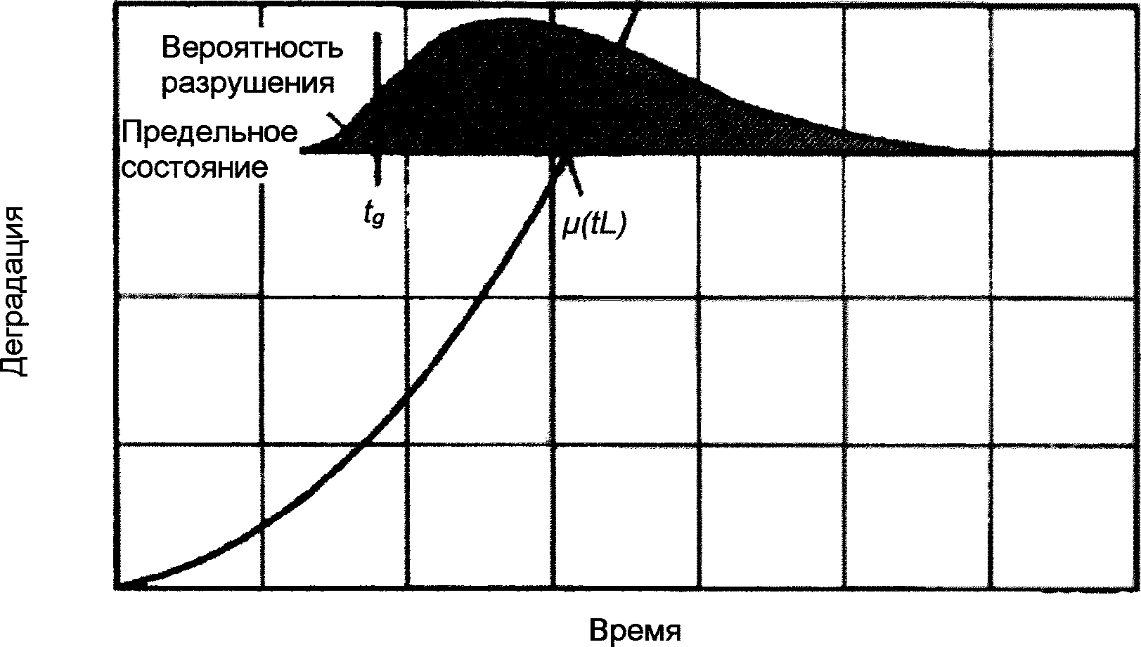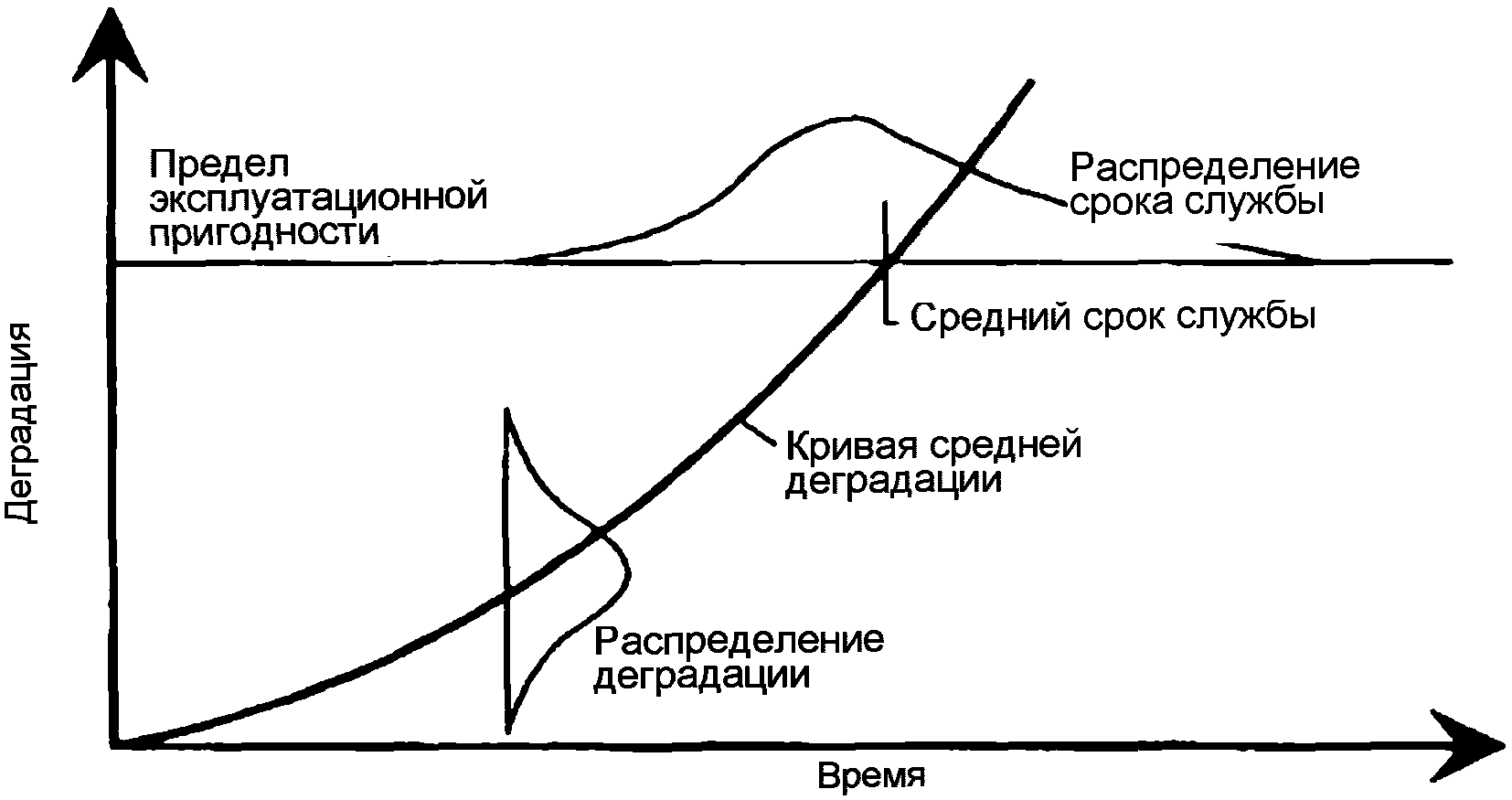 4.1.1.2 Работоспособность - функция времени и, с этой точки зрения, прямо связана с понятием долговечности. Деградация представляет собой процесс постепенного снижения характеристик работоспособности во времени, поэтому описание работоспособности можно осуществлять через степень деградации.