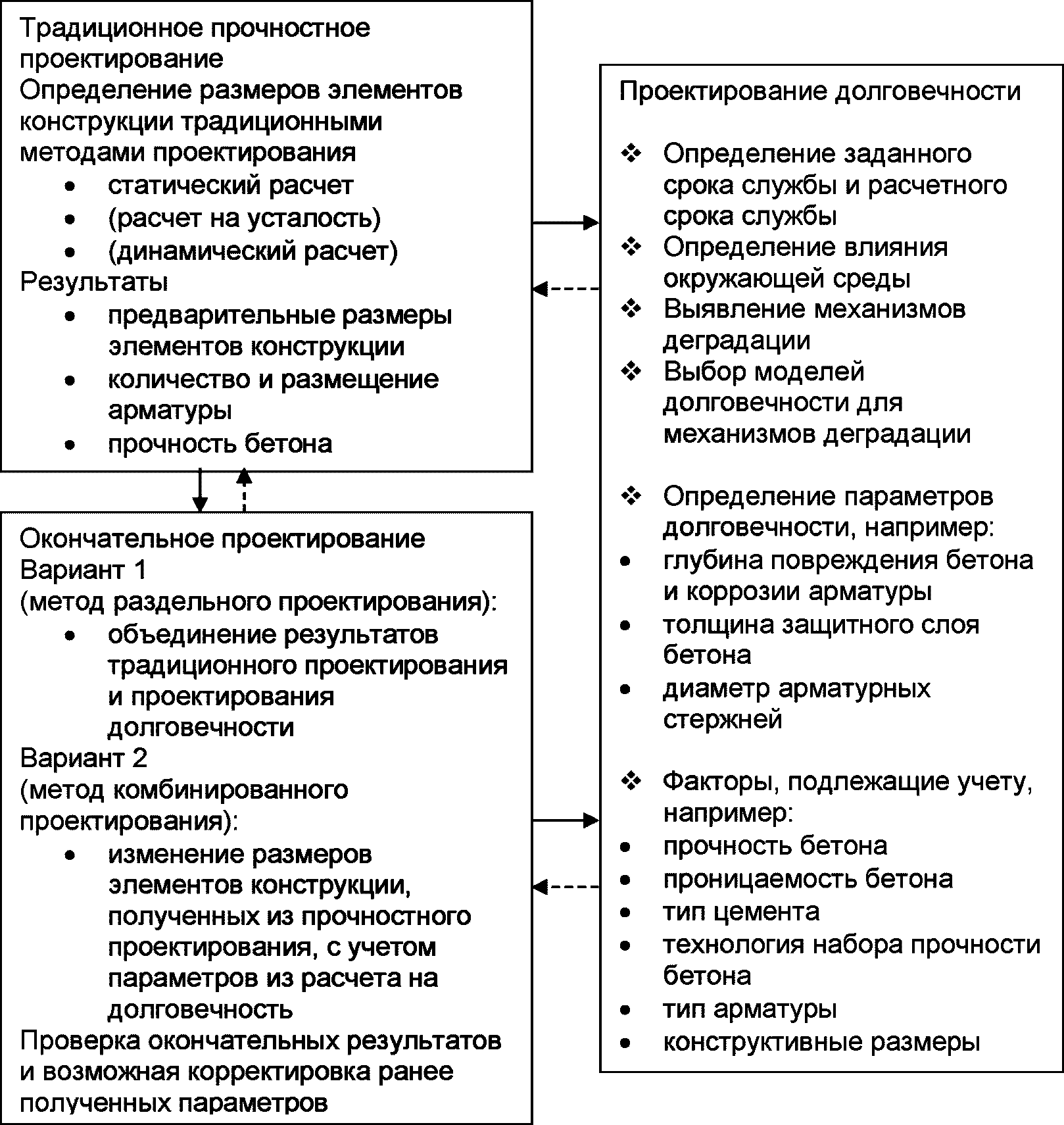 Проектирование долговечности железобетонных конструкций традиционно основывали на установившихся правилах и требованиях к характеристикам материалов, к качеству их составляющих, к условиям работы конструкции, с учетом требований, отраженных в действующих отечественных нормативных документах и ряде документов зарубежных стран.