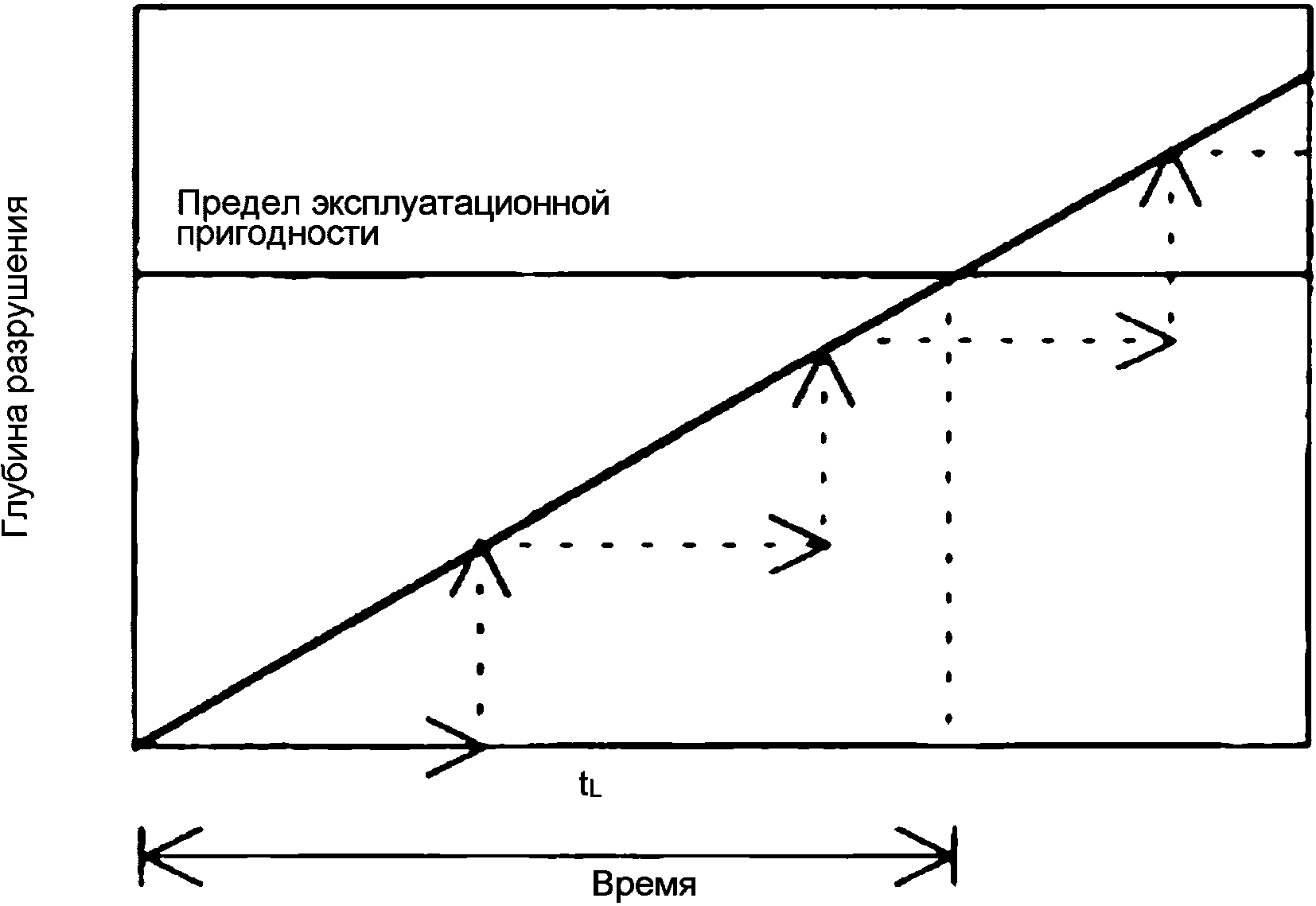 3.16 предельное состояние по долговечности: Минимально приемлемое состояние эксплуатационных качеств или максимально приемлемая степень деградации.
