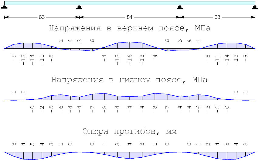 напряжений в нижнем поясе стальной балки над промежуточной