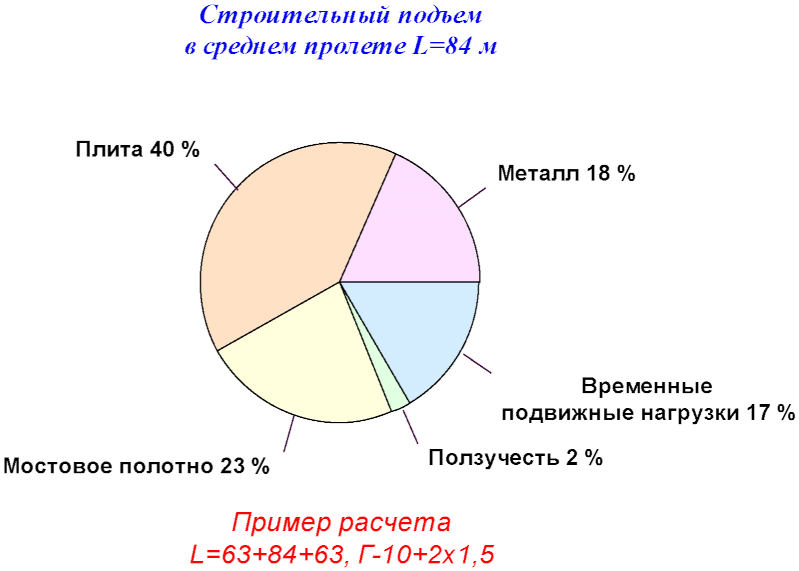 В этих условиях, большое значение приобретает учет ряда конструктивно-технологических факторов, сопутствующих сооружению и эксплуатации сталежелезобетонных пролетных строений, таких как: последовательность бетонирования плиты проезжей части, образование сквозных трещин в железобетонной плите над промежуточными опорами, долговременные процессы в бетоне (усадка и ползучесть), саморазогрев бетона в процессе твердения, температурные перепады между стальной и бетонной частями поперечного сечения, допущение ограниченных пластических деформаций в металле.