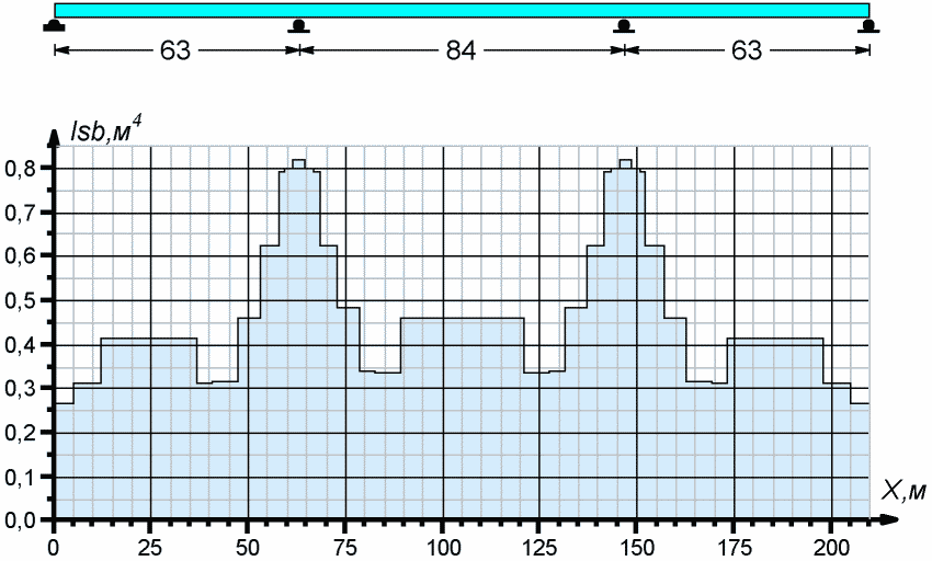 Рисунок А.1 - Эпюра моментов инерции стальной балки