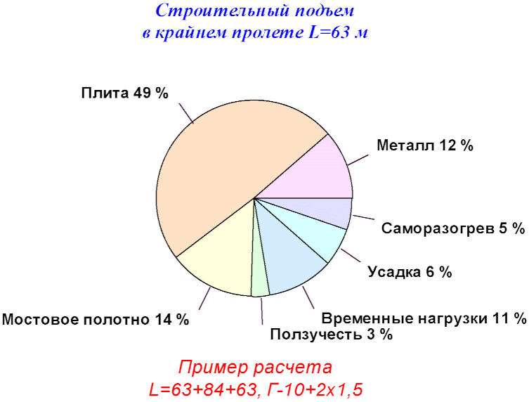 (рисунок 16) служит отправной точкой для назначения ординат строительного подъема. Деформации от усадки и саморазогрева бетона в среднем пролете мостового сооружения при получении суммарной эпюры прогибов проигнорированы, поскольку имеют обратный знак и ведут к уменьшению строительного подъема.