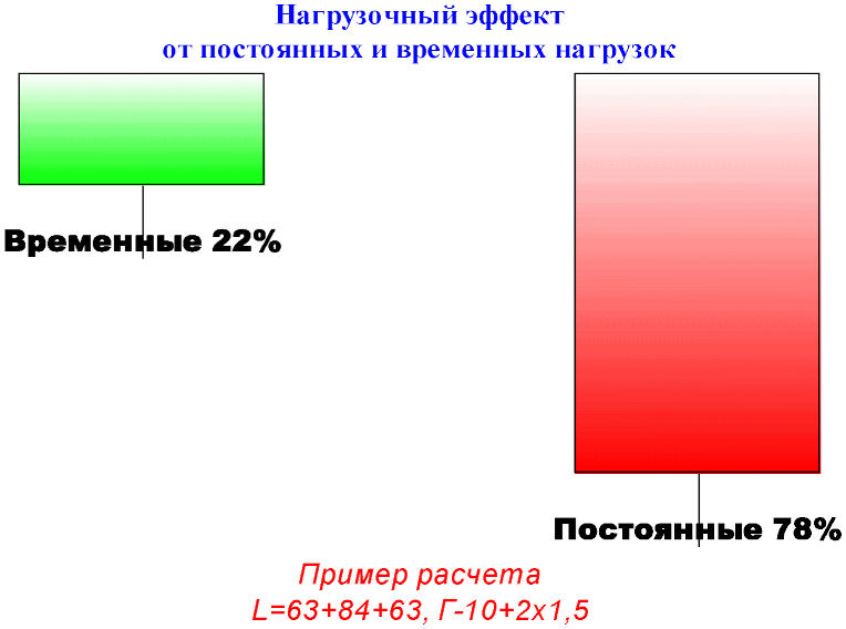 Вклад временных подвижных нагрузок в общую работу пролетного строения приведен на