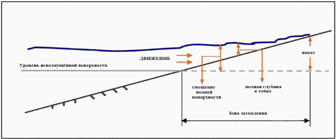 - тип сопряжения наклонной плоскости с поверхностью воды (наклонная плоскость может быть сопряжена с поверхностью воды по радиусу).
