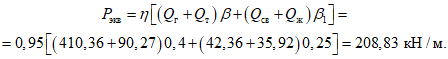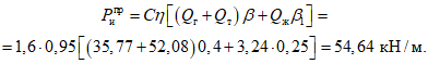 формуле (19) определяем расчетную вертикальную нагрузку веса транспортируемой жидкости