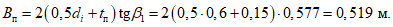 Bв = B1 + 2(H + Hт)mот = 1,6 + 2(4,0 + 1,05)0,75 = 9,175 м.