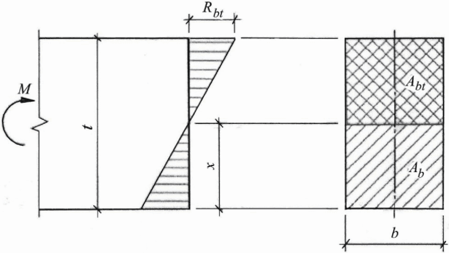 MБ определяем минимальную величину сопротивления бетона растяжению, необходимую для восприятия расчетного изгибающего момента, при которой исключается образование трещин