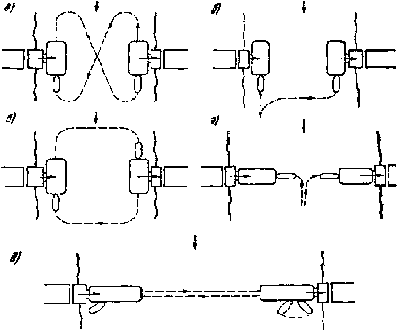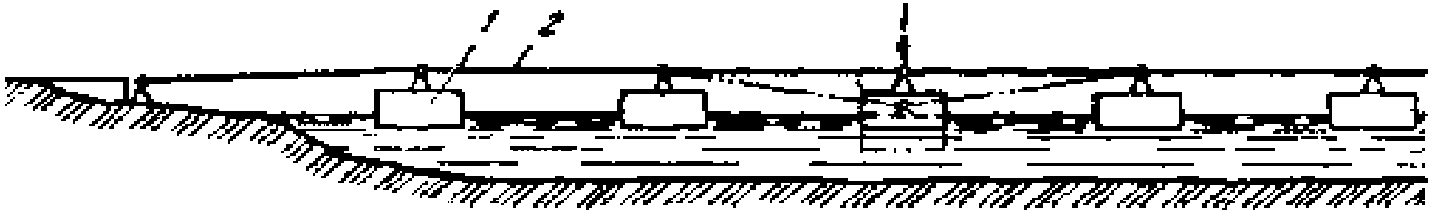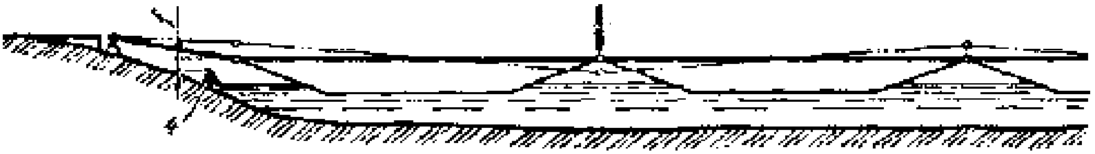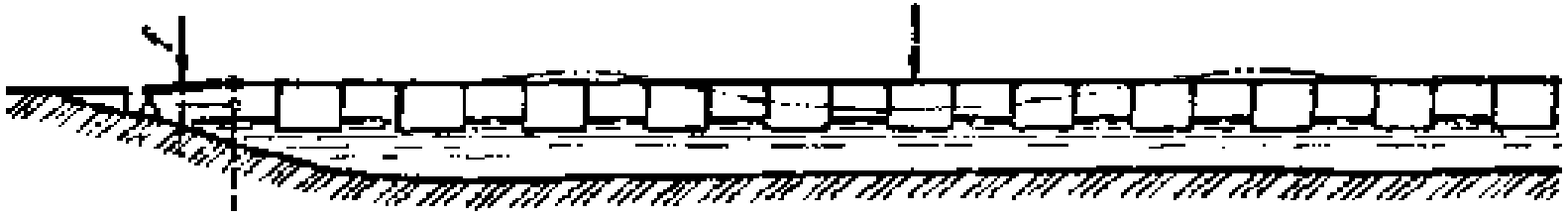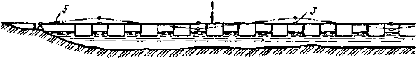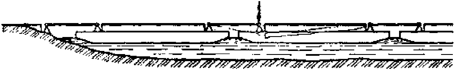 15. Наплавной мост на отдельных плавучих опорах: мост, состоящий из отдельных плавучих понтонов, объединенных между собой верхним пролетным строением.