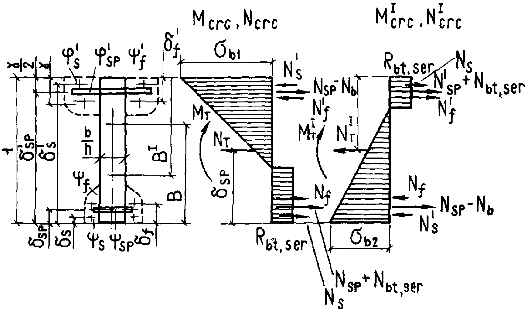 равны нулю. Балки из экономических соображений выполняются со свесами (полками), а при значительных пролетах и нагрузках - обязательно с уширениями. Только в частных случаях и в монолитном железобетоне применяются сечения прямоугольной формы.