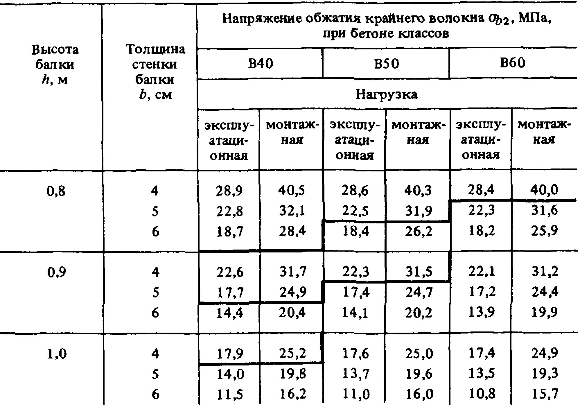 при сжатии и растяжении в зависимости от класса бетона по прочности на сжатие приведены в табл. 1.