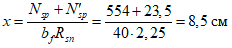 рекомендуется определять из условия, чтобы равнодействующая усилий в арматуре находилась в сечении в оптимальном положении.