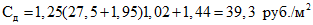 где 27,5 - оптовая цена конструкции (Прейскурант N 06-08.1982. Оптовые цены на железобетонные изделия. Часть 1);