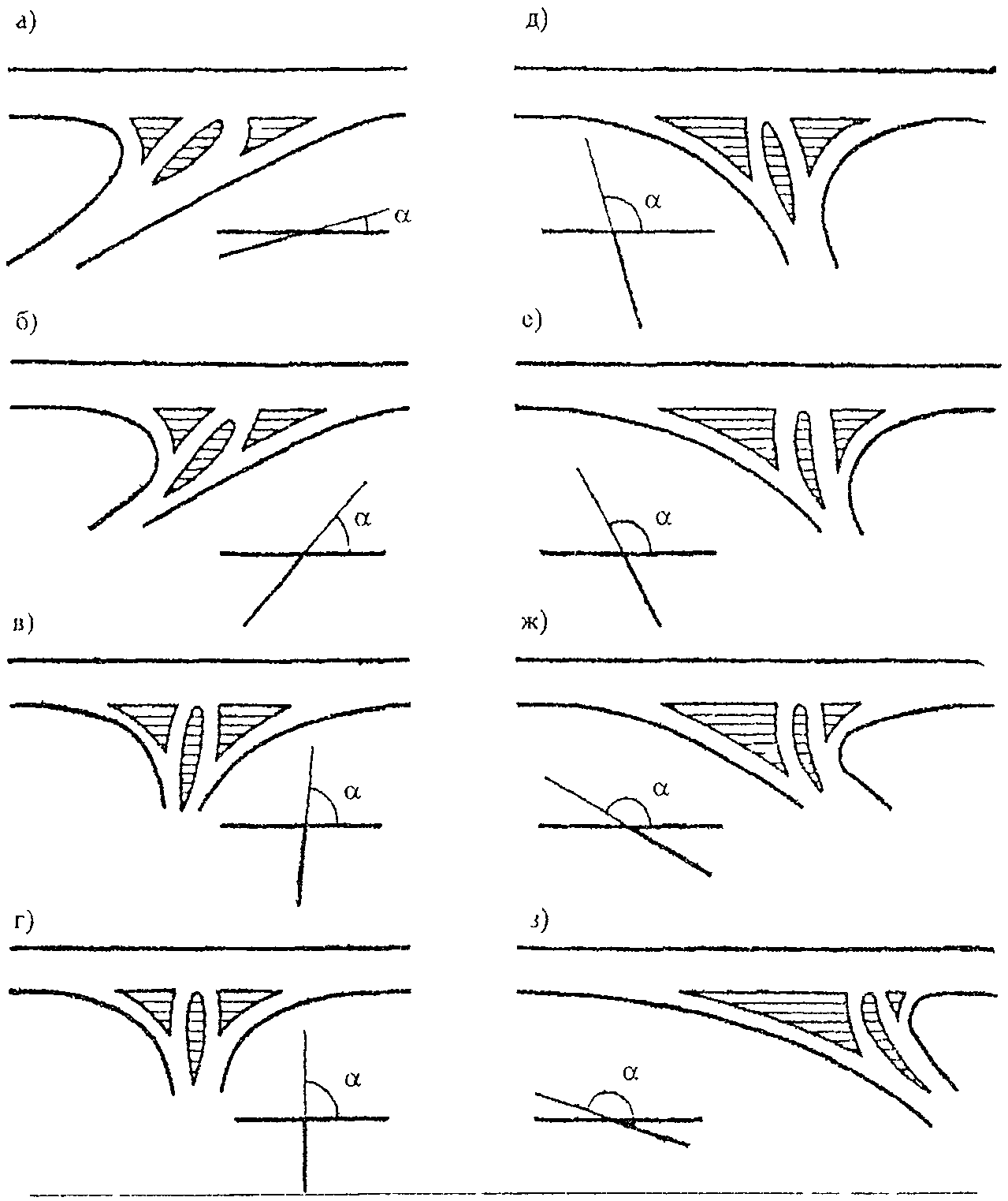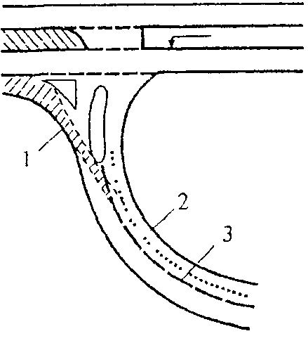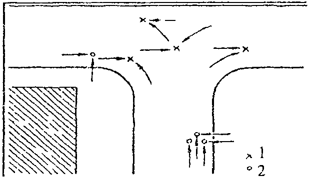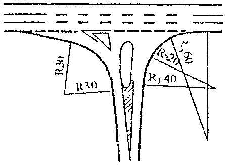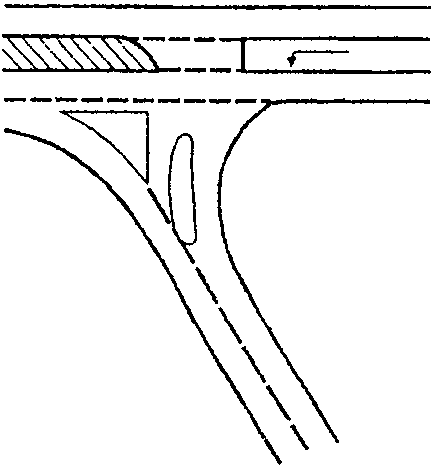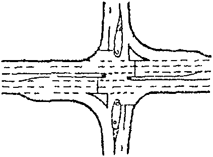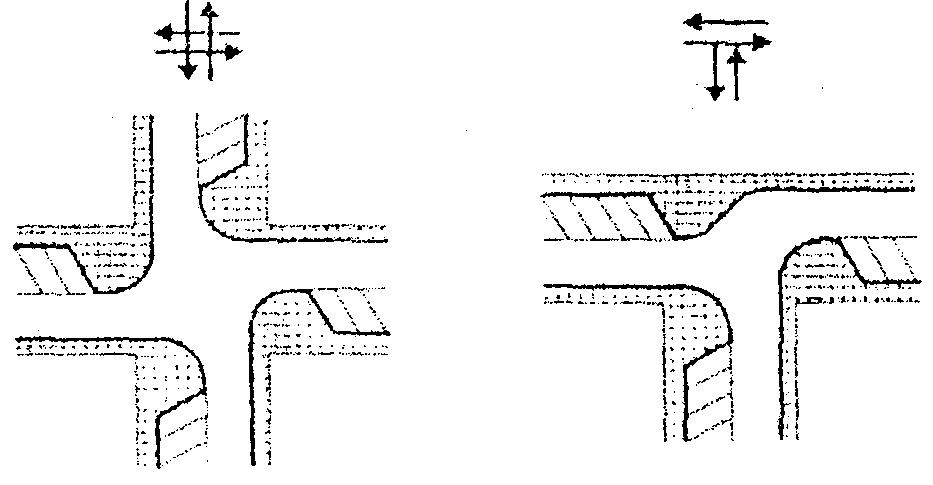 6) слияния или перекрещивания транспортных потоков на пересечениях дорог, съездах, примыканиях, переходно-скоростных полосах;