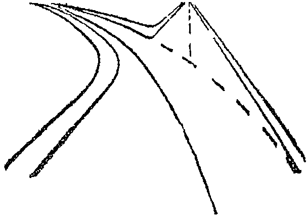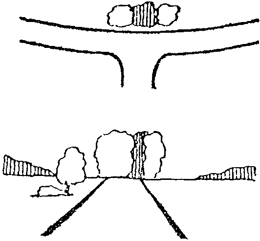5) где у водителя исчезает ориентировка в направлении дороги или возникает неправильное представление о нем (поворот в плане непосредственно за выпуклой кривой, неожиданный поворот в сторону с примыканием второстепенной дороги по прямому направлению);