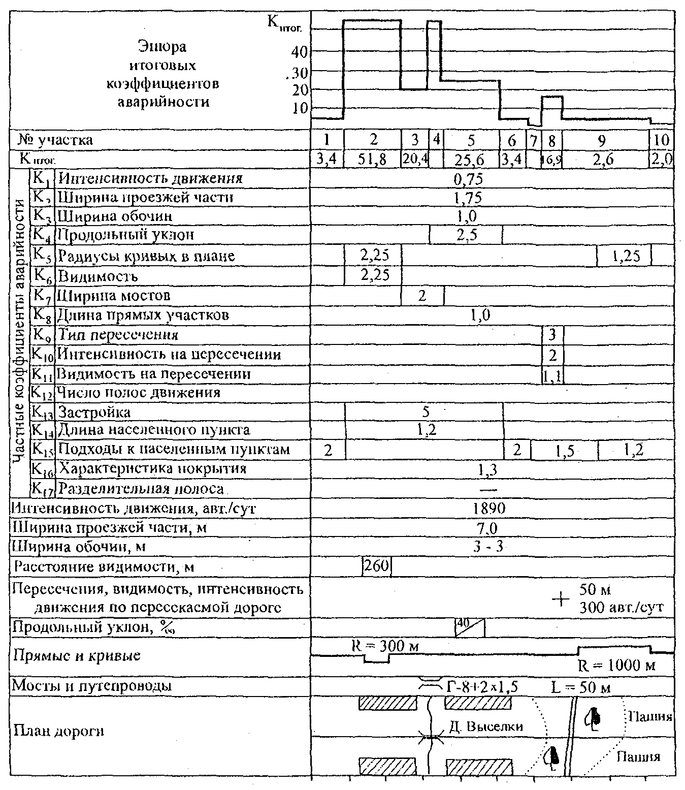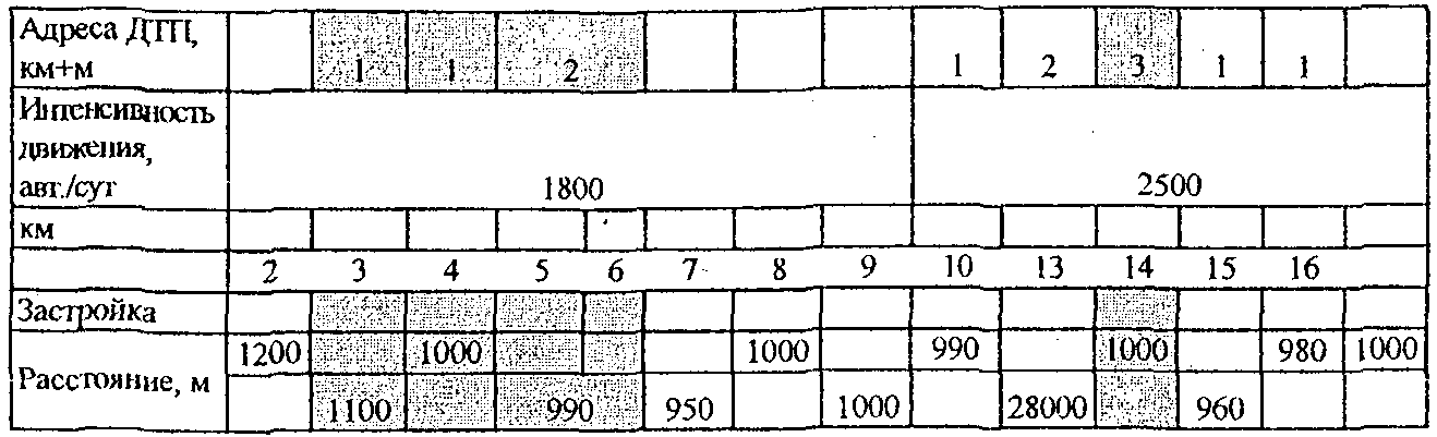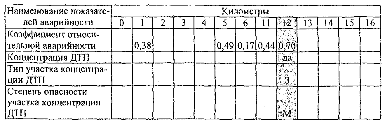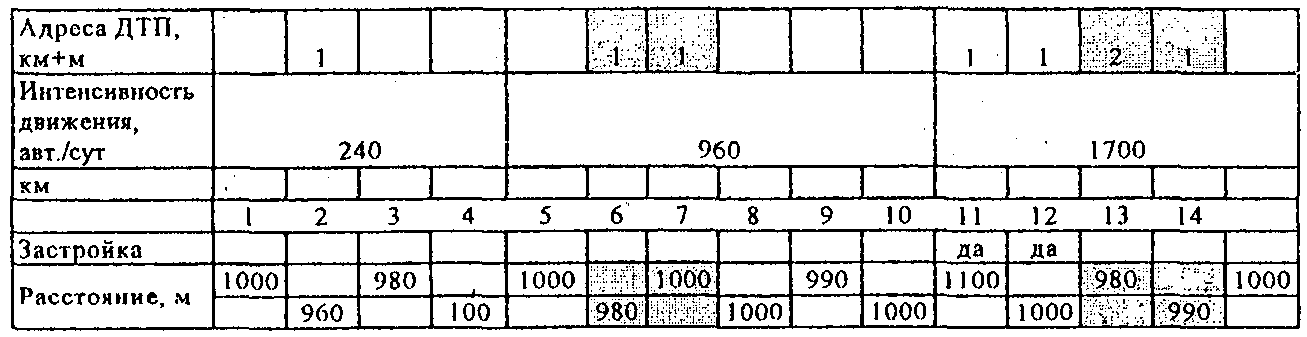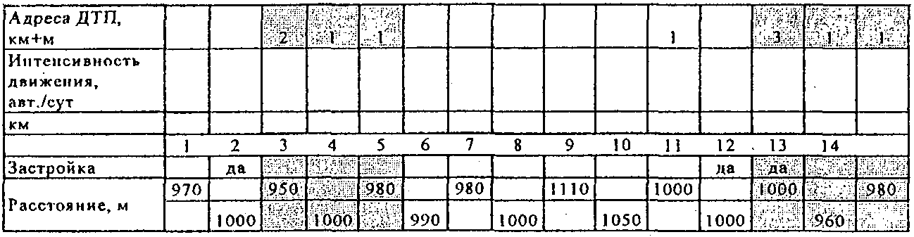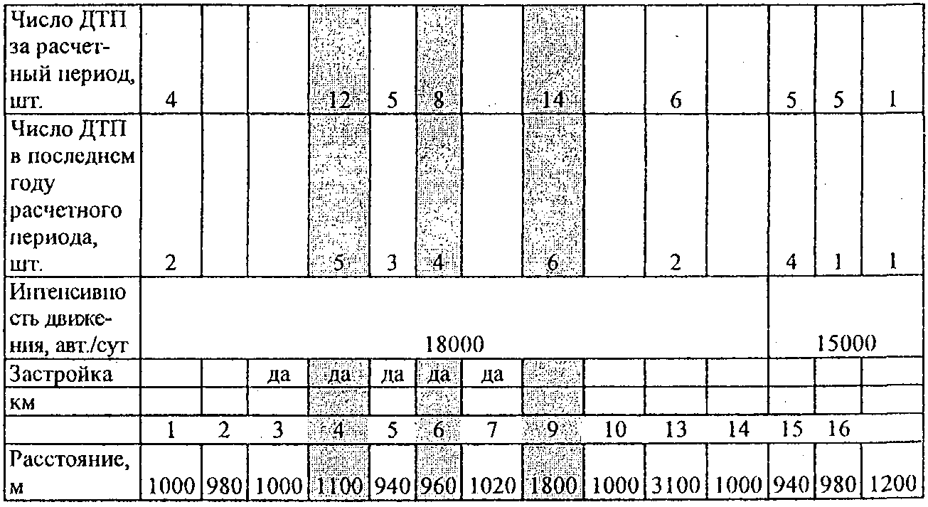 1.2.10. При отсутствии сведений о фактической интенсивности движения (например, на территориальных дорогах) на период до их получения временно допускается применять метод выявления участков концентрации ДТП, основанный на использовании следующей исходной информации:
