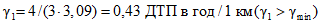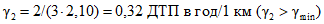 Среднее число ДТП в год на 1 км для дорог данной группы n = 0,22.