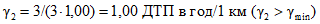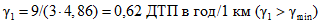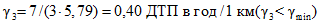Среднее число ДТП в год на 1 км для дорог данной группы n = 0,26.