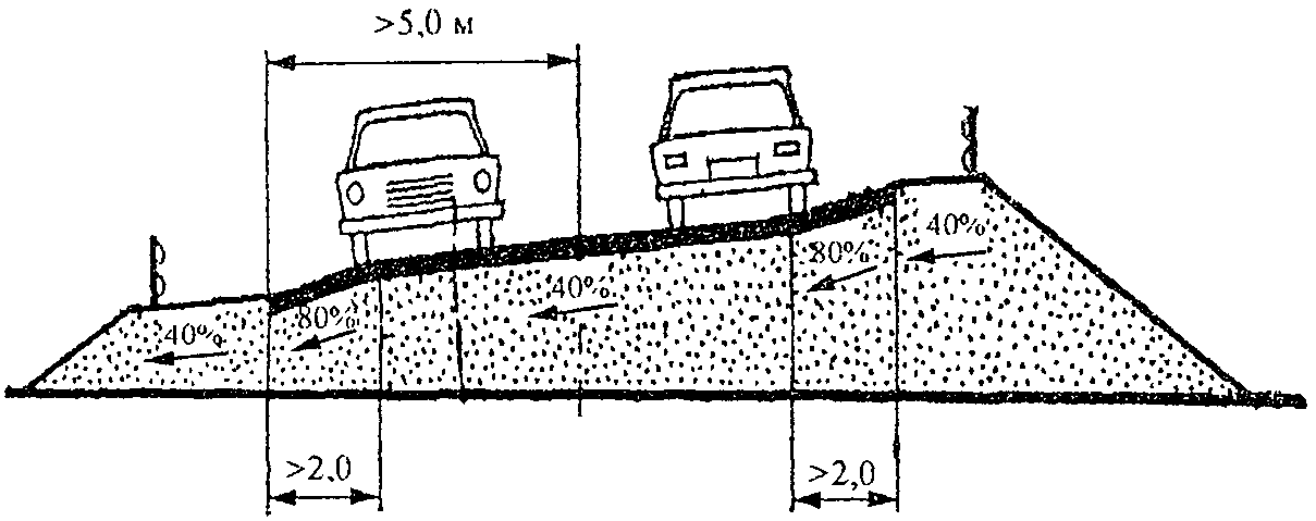 3) где из-за погодных условий создается несоответствие между скоростями движения на них и на остальной дороге (заниженное земляное полотно там, где часты туманы, гололед, на дорогах, проходящих по северным склонам гор и холмов или около промышленных предприятий, и т.д.);