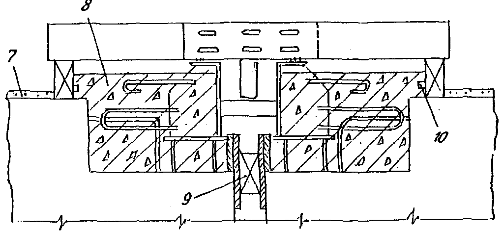 - плиту проезжей части железобетонных и сталежелезобетонных пролетных строений не следует бетонировать на ширине "b", достаточной для размещения анкеровки шва, либо она должна иметь специальные закладные детали для закрепления конструкции шва;