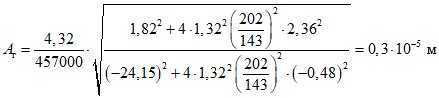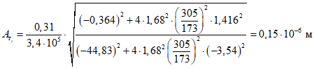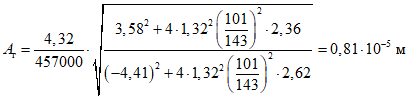 Амплитуду горизонтально-крутильных колебаний верхней плиты рамного фундамента определяем по формуле