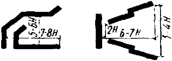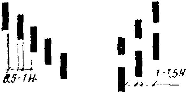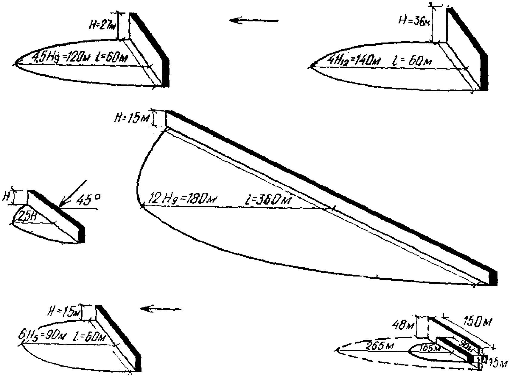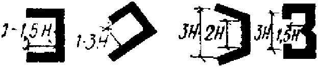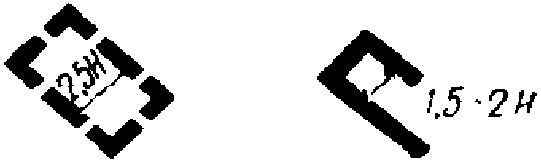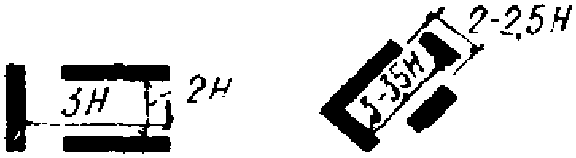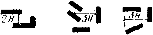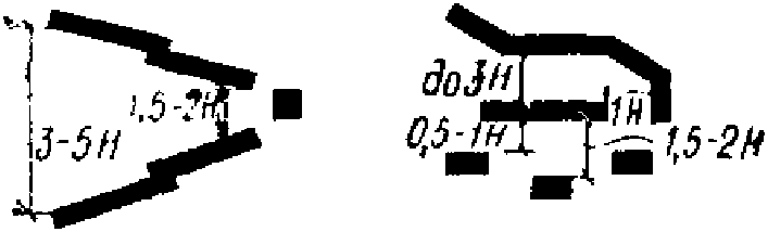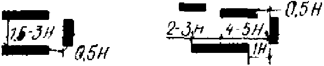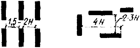 Таким образом, оптимальные параметры застройки могут быть выбраны с помощью номограммы N 1, основанной на использовании коэффициентов скорости ветра, а номограмма N 2 позволяет провести более детальный анализ ветровой обстановки и определить значение коэффициента скорости ветра в любой точке между двумя параллельно стоящими зданиями.