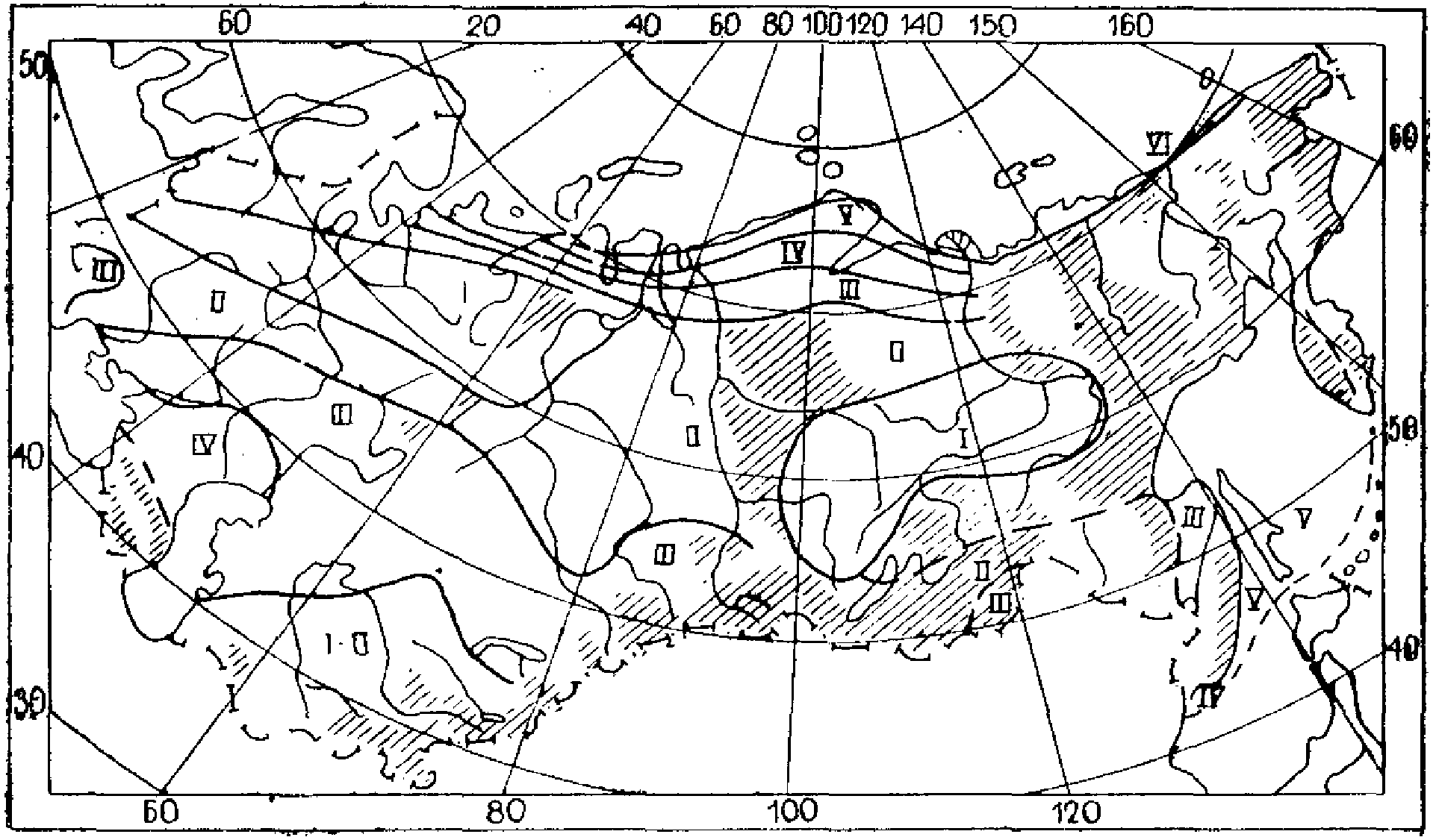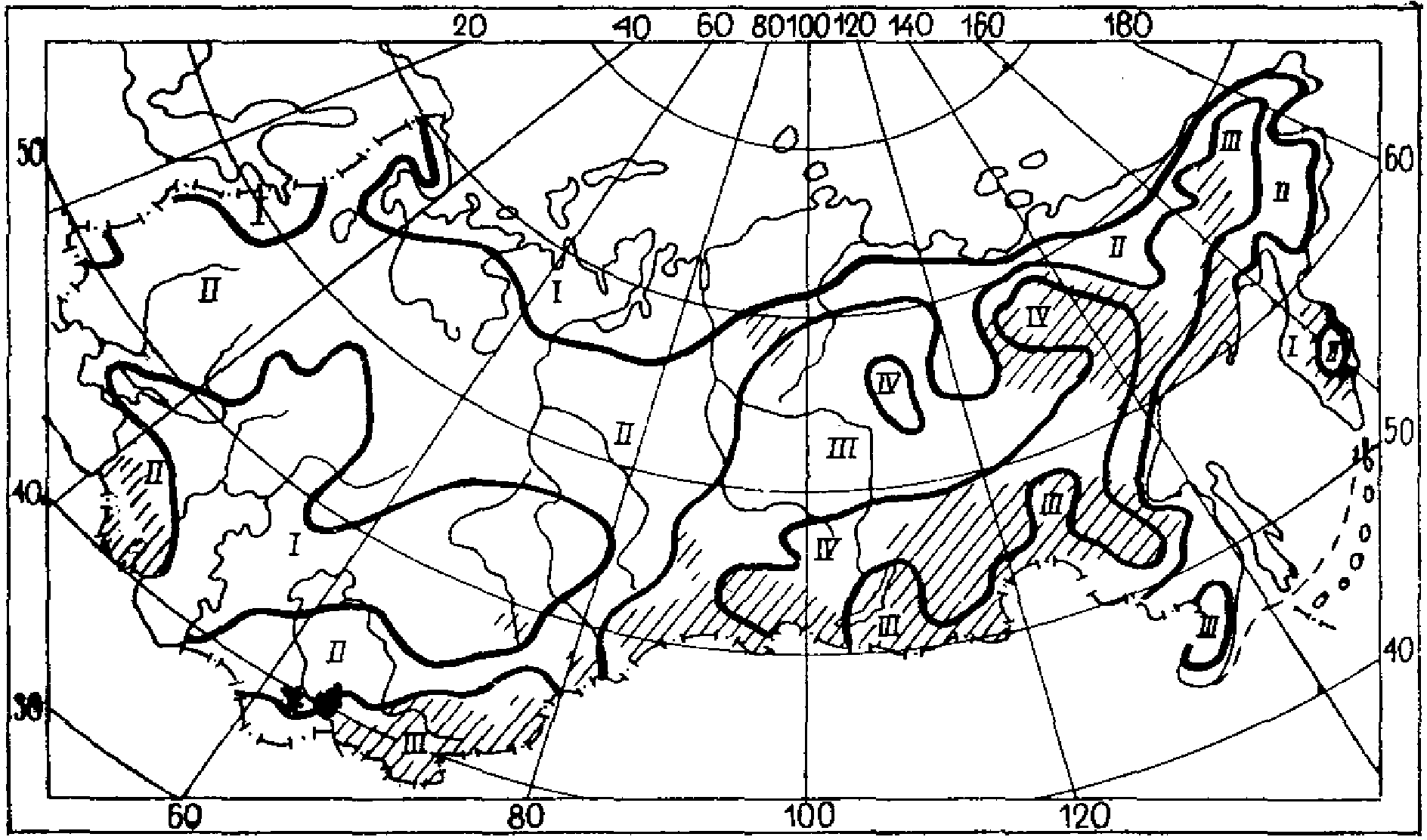 Из приведенного районирования следует, что на территории СССР, лежащей к северу от 47 - 50° с. ш., охлаждающее влияние ветра приводит к малой повторяемости комфортных для человека условий.