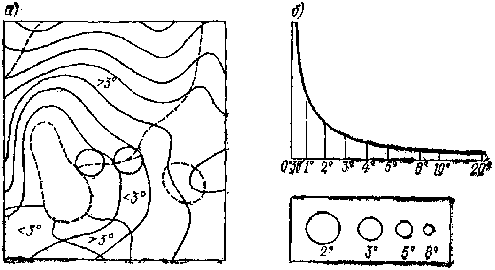 Схема углов наклона местности вычерчивается на отдельном экземпляре топографической основы. Угол падения склона