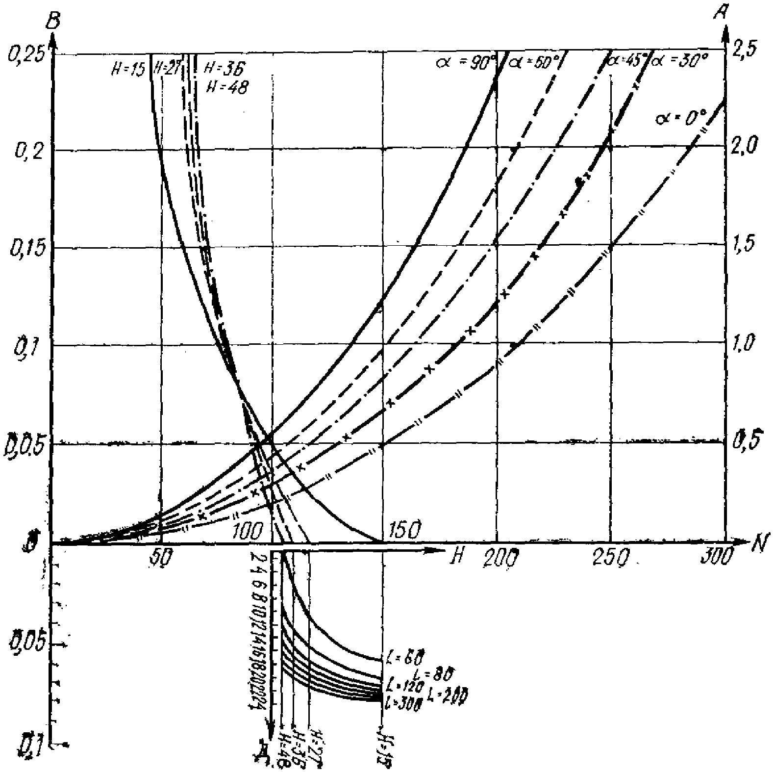 Сетка слева от оси Xm/N дает возможность сразу определить Xm в метрах для полученного значения Xm/N при заданном значении N. Таким образом, Xm определено.