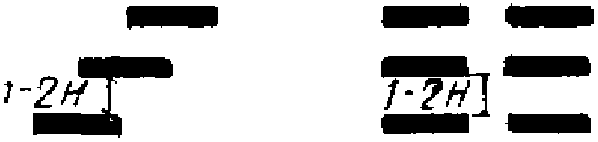 высота полосы относительно высоты здания (H = 15 м) | интервал между полосой и зданием, H | средний процент снижения скорости ветра | Примечания |