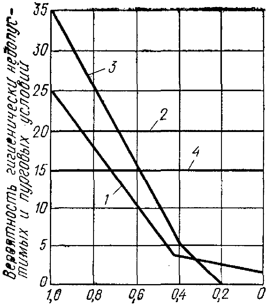 рис. 5 прил. 2 (по А.В. Яковлеву). Показателем суровости биотермических условий является отношение гигиенически недопустимых условий к холодным в процентах. Критерием суровости служит ее 20%-ная вероятность.